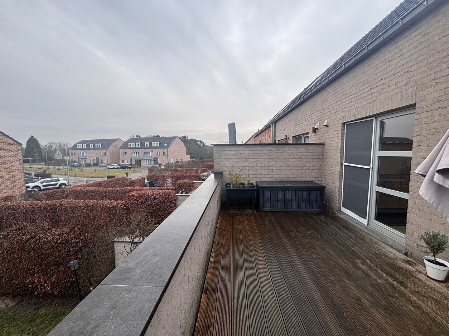 Duplex appartement met 3 slaapkamers, omvattende : ruime leefruimte en volledig geïnstalleerde open keuken met veel lichtinval, zuid-oost gericht nieuw terras van 15 m². Op de eerste verdieping, een apart toilet, nachthal, 3 ruime slaapkamers, badkamer met ligbad/douche en badkamermeubel, zolderruimte. Garageplaats en berging in ondergrondse garage. Geen gemeenschappelijke kosten. Verwarming op aardgas. Aparte tellers. Beschikbaar vanaf 1/5/2026. Gelegen net buiten de ring van Aarschot op 5 min. van de aansluiting met E314 en van het stadscentrum. Voor meer inlichtingen of bezichtiging : www.t-vastgoed.be of 0495/252.251.
